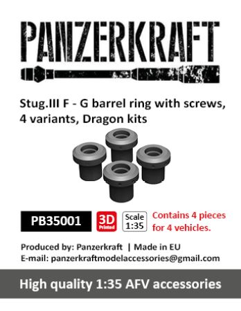 PB35001 Stug.III F - G barrel ring with screws, 4 variants, for 4 vehicles, Dragon kits