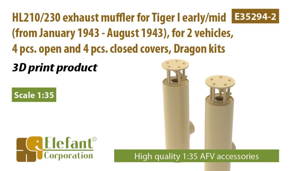 E35294-2 HL210/230 exhaust muffler for Tiger I early/ mid(from January 1943 - August 1943), for 2 vehicles, 4 pcs. open and 4 pcs. closed covers, Border and RFM kits